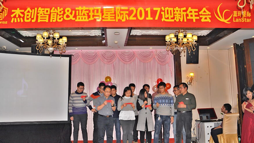 333体育官网智能董事长孙超先生、各界嘉宾、333体育官网智能董事兼蓝玛星际总经理朱勇杰先生及蓝玛星际全体员工、333体育官网智能北京分公司员工一众人等出席了本次年会。大家亲切交流,热情互动,一起回顾2016,展望2017,表彰先进、喜中大奖、欣赏歌舞、品味美食、分享喜悦,共同参与了一场喜庆、圆满的年度欢乐盛宴。