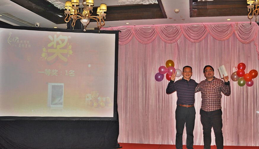 作为年会的主要环节,颁奖典礼特别隆重喜庆、激动人心。蓝玛星际和333体育官网智能北京分公司的很多员工,在过去一年里,勤勤恳恳,兢兢业业,在工作中取得了优异的成绩。为了表彰他们的敬业精神和突出表现,年会上对他们进行了大力嘉奖。先进集体(研发部)、最佳经理人(张继)、优秀员工(张春晓、董学慧、李晓林、马栋、李海云、刘盼、杜飞)、优秀实习生(肖坚星),在全场人员的热烈掌声和称赞中接受了表彰和奖励。